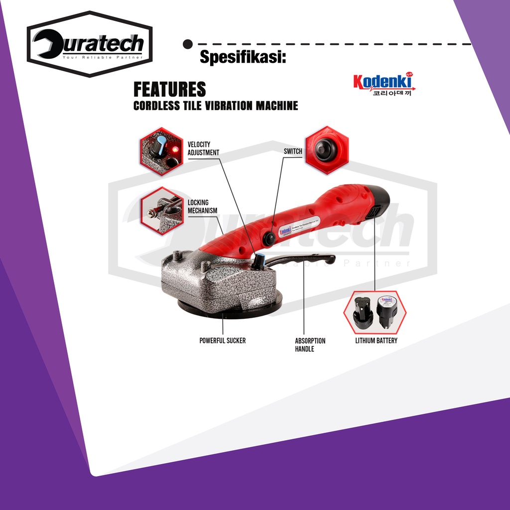 Kodenki mesin kop keramik getar hisap otomatis cordless baterai 12 V pasang keramik granit kaca / Cordless tile suction