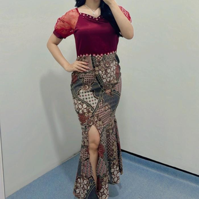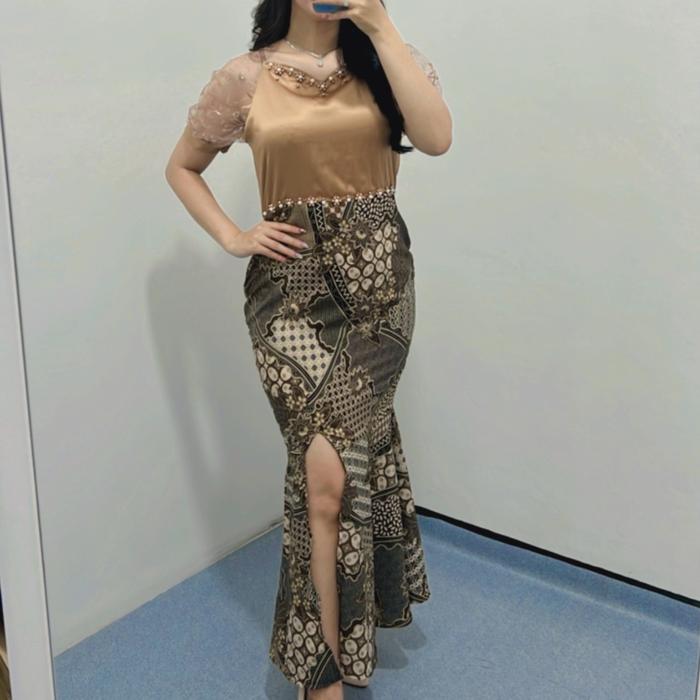 DRESS BATIK NABILA /DRESS BATIK COUPLE /DRESS BATIK DUYUNG /DRESS PESTA /DRESS NATAL BAJU WANITA CANTIK KONDANGAN KOMBINASI GAUN PANJANG - ABU, XL