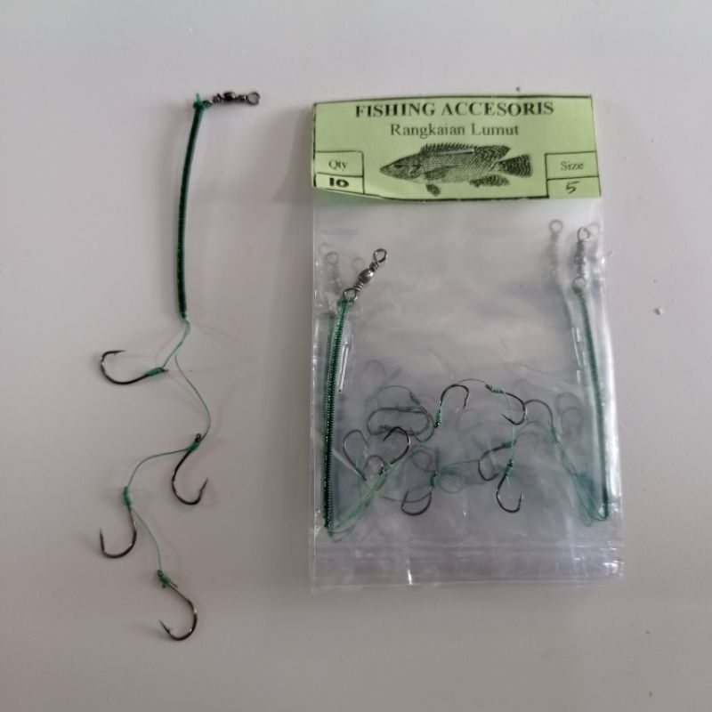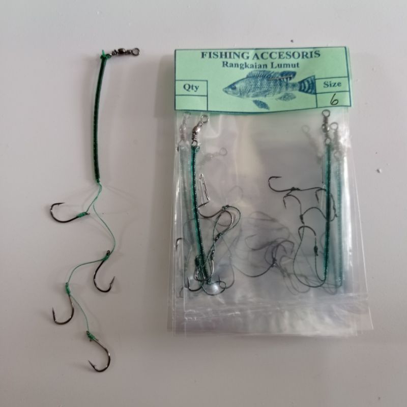 per 5 kantong }Rangkaian Pancing Lumut Cabang 4 kail Daido seri 1054 No 1 - 10 tajam