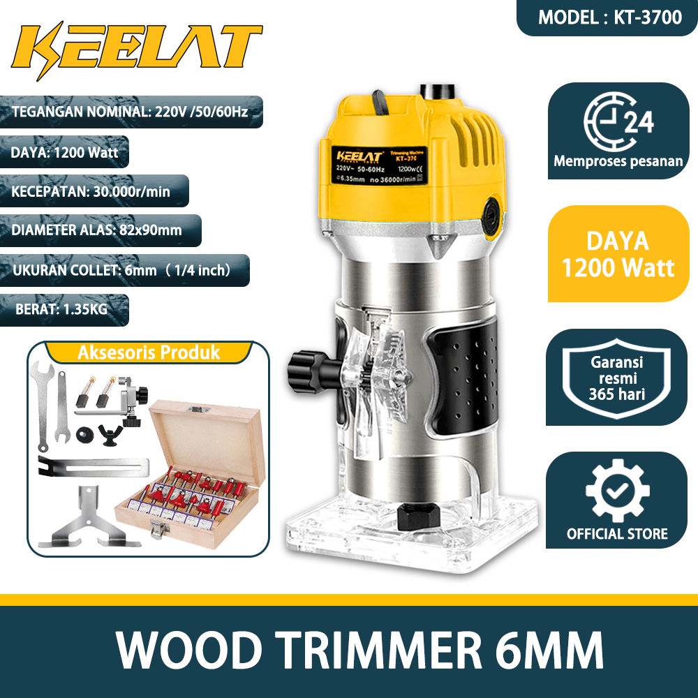 【KEELAT-KT-3700】 Wood Trimmer 1200W 1/4 Mesin Router Profil Kayu 6 mm