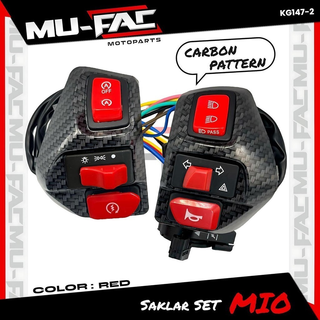 DO Saklar Yamaha MIO Vietnam MUFAC 100% Original Saklar Set Kanan Kiri Motif Carbon dan Tombol Warna