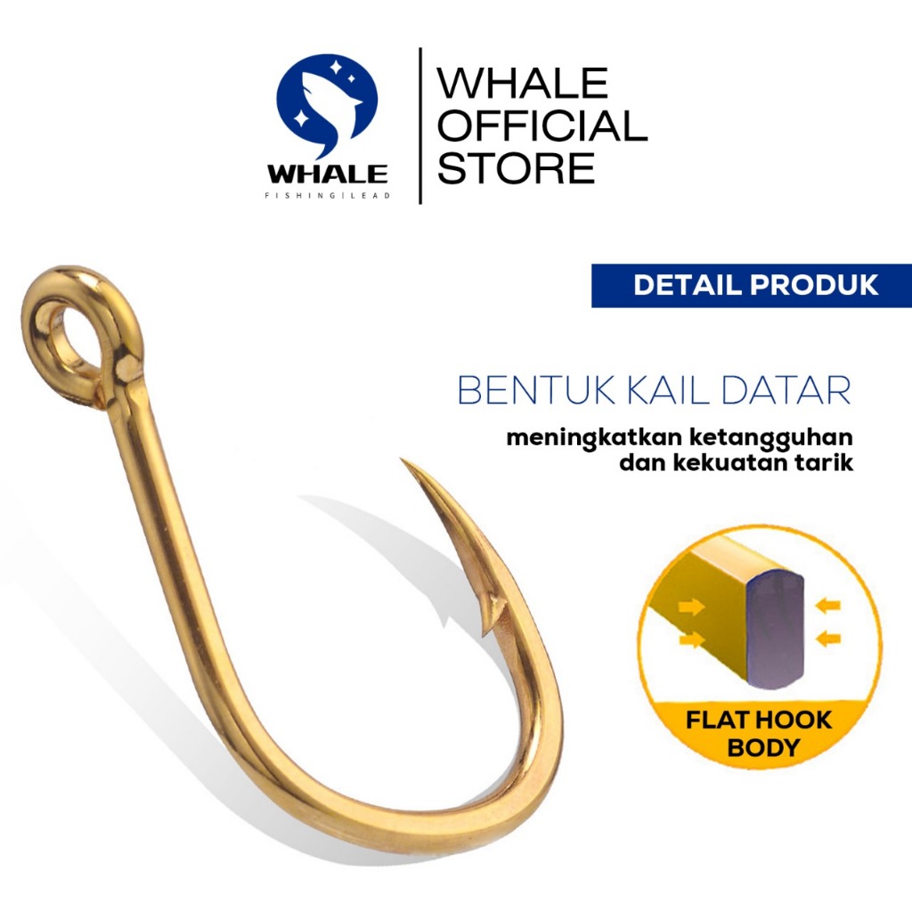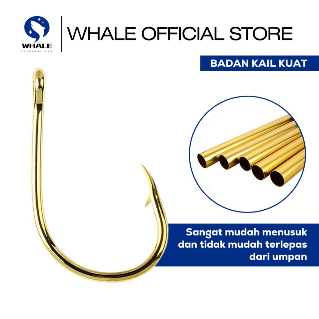 WHALE - Kail Pancing Gold isi 20pcs Kail Pancing Bahan Baja Karbon Kuat Untuk Air Tawar / Laut High Carbon Steel Barbed