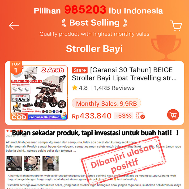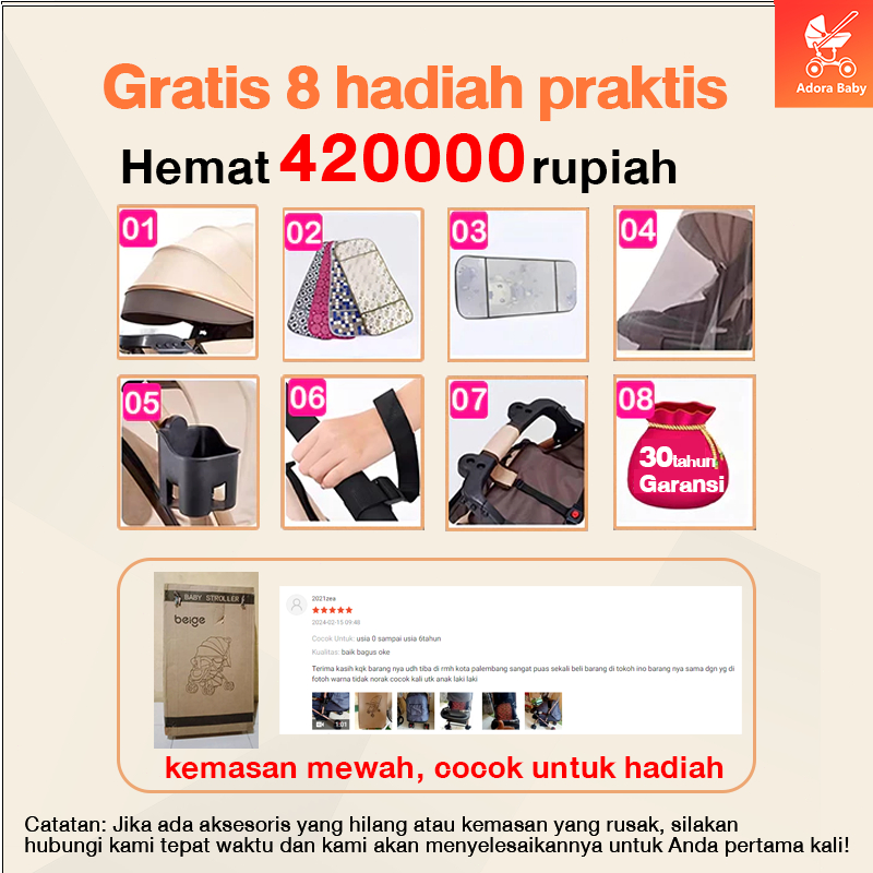 [Garansi 30 Tahun] BEIGE Stroller Bayi Kereta 2in1 Lipat Bisa Dua Arah Kursi Adjustable newborn
