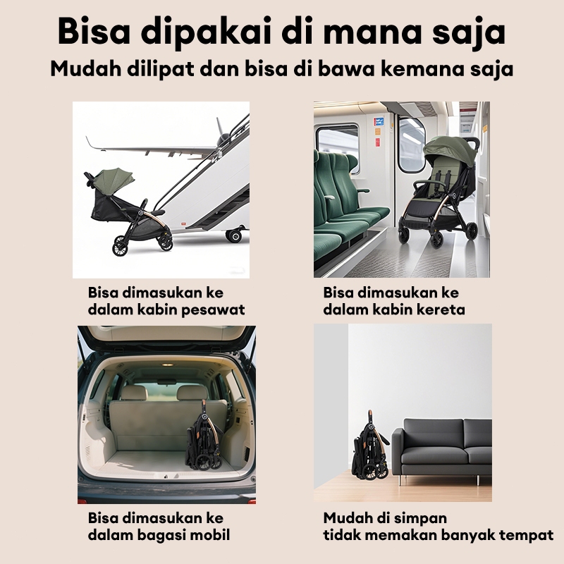 [Garansi 15 Tahun]Autofold Stroller Mudah untuk dibawa Lipat Baby Stroller Cabin Size