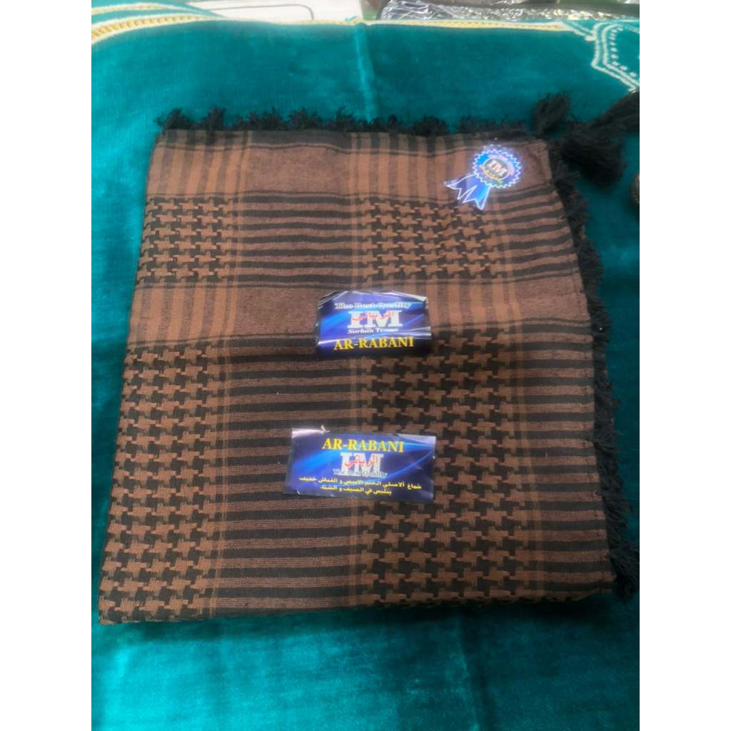 Sorban koncer timbul segi empat harga per 10pcs grosir merk ar rabani,Al fahri dan amanah ,cocok buat oleh” haji