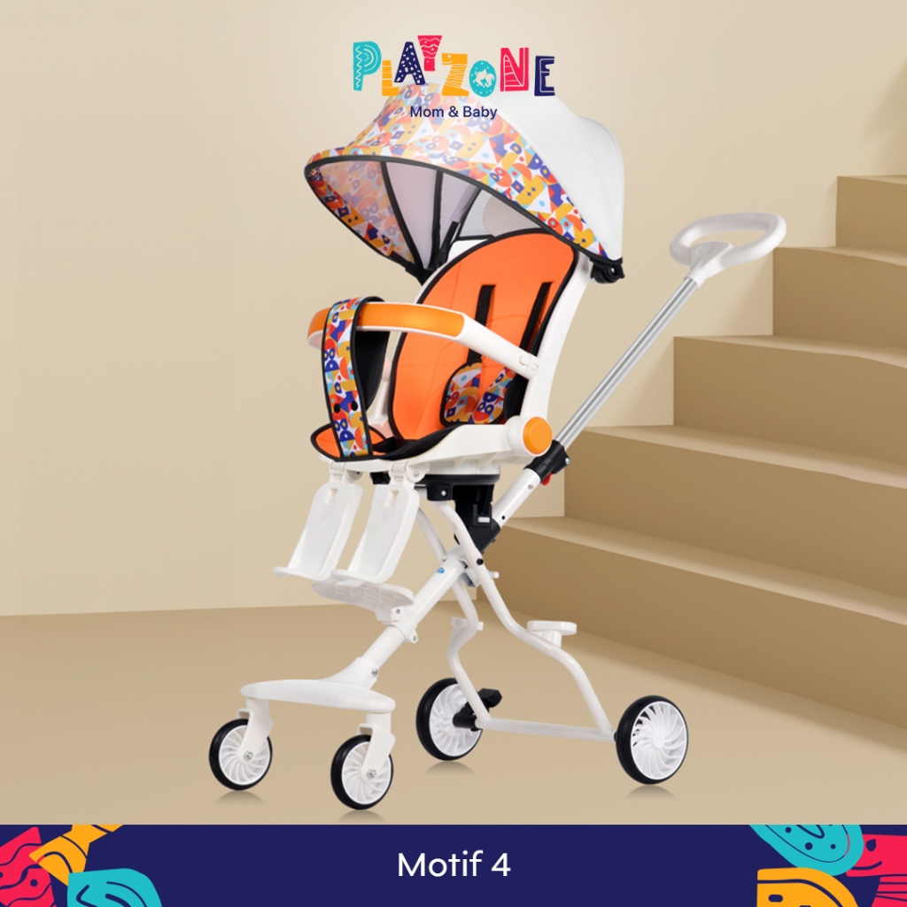 Play Zone Kereta Dorong Bayi Lipat Dua Arah Stroller Dorong Bayi Dengan Atap / Perlengkapan Bayi Portable Stroler Roda