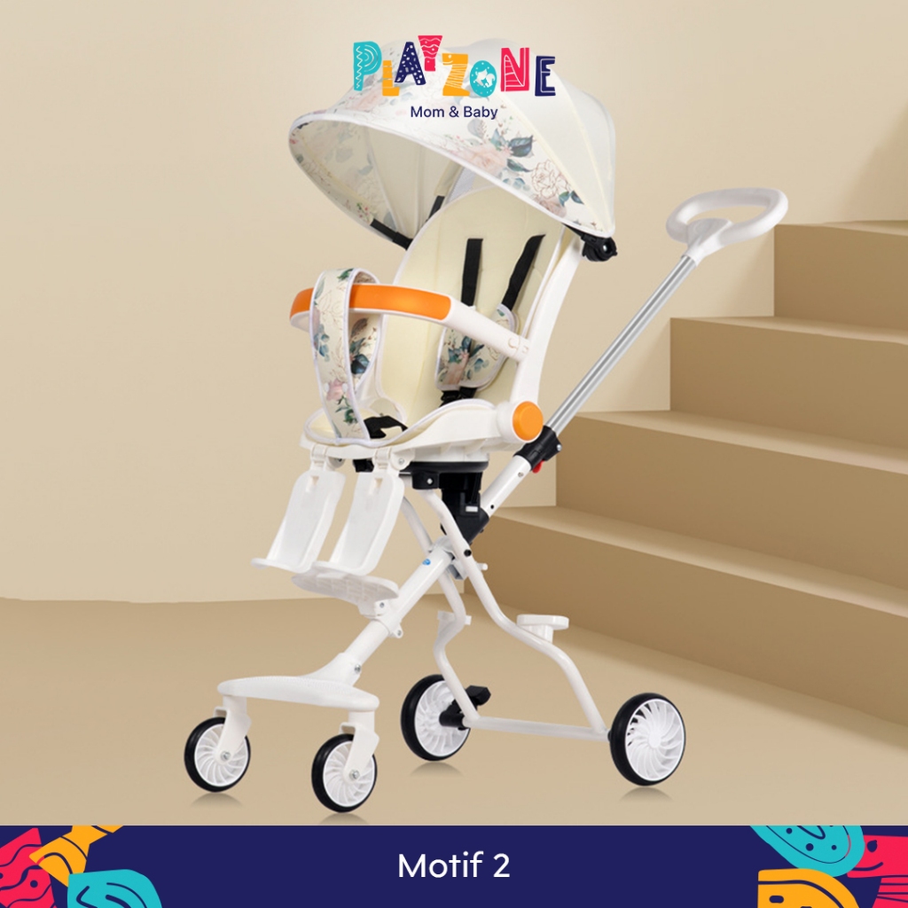 Play Zone Kereta Dorong Bayi Lipat Dua Arah Stroller Dorong Bayi Dengan Atap / Perlengkapan Bayi Portable Stroler Roda