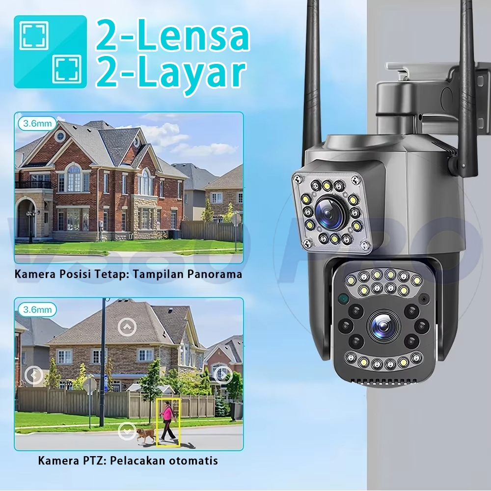 V380 Pro CCTV WiFi 4K 8MP 4G SIM Kamera PTZ IP66 Tahan Air Outdoor Lensa Ganda di Luar Ruangan