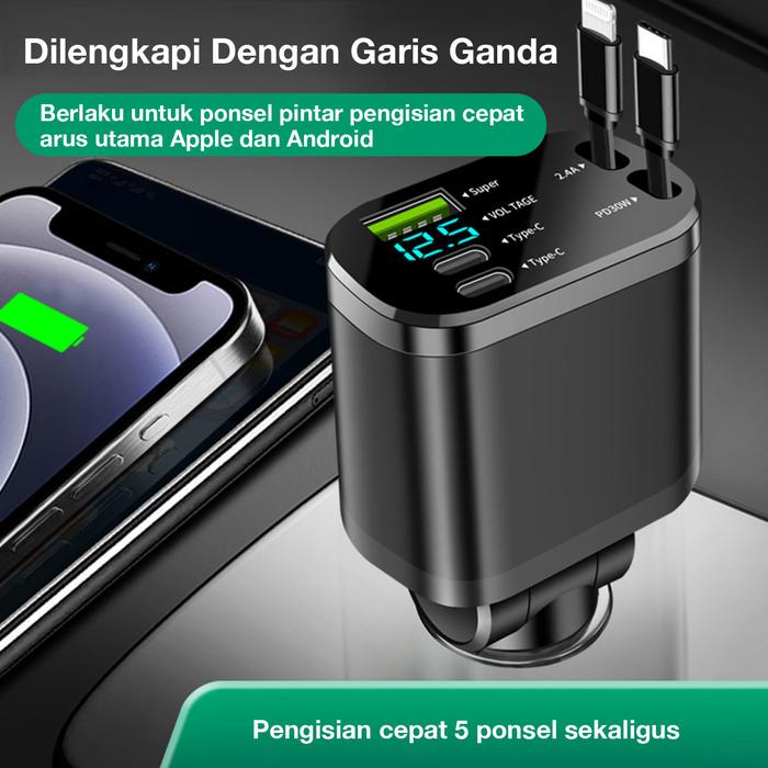 Acroder Car Charger Mobil 5 Ports PD 130W USB Type C & Lightning Fast Charging QC 3.0 - iPhone+Type-C-PD30W