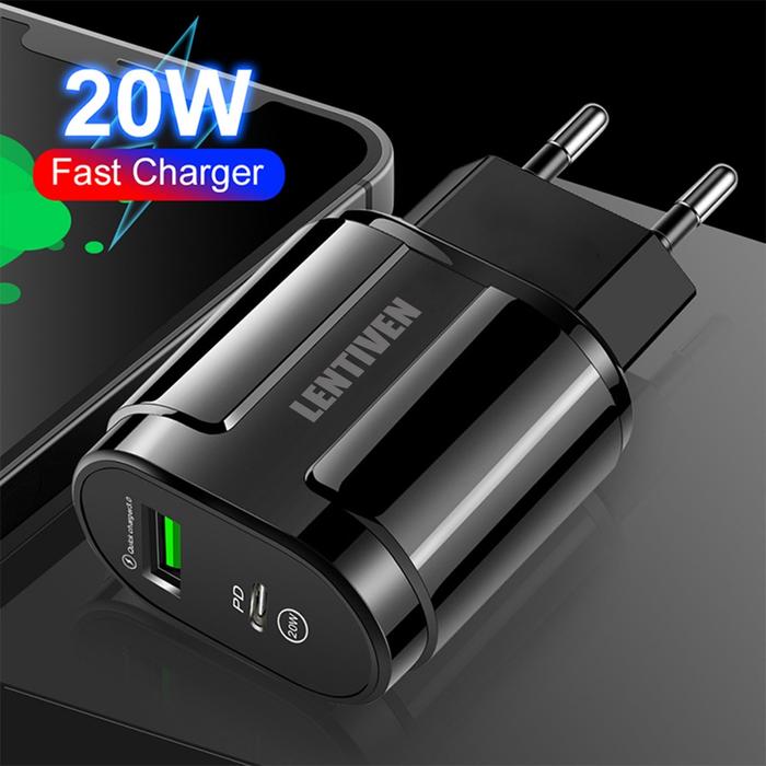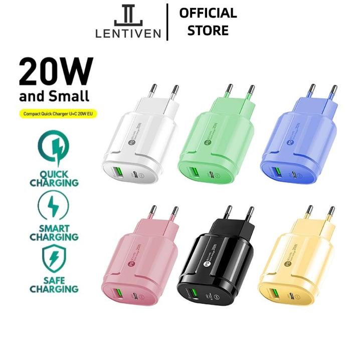 LENTIVEN Adaptor Charger fast charging USB Type C Kepala Charger 20W Adapter - BLACK