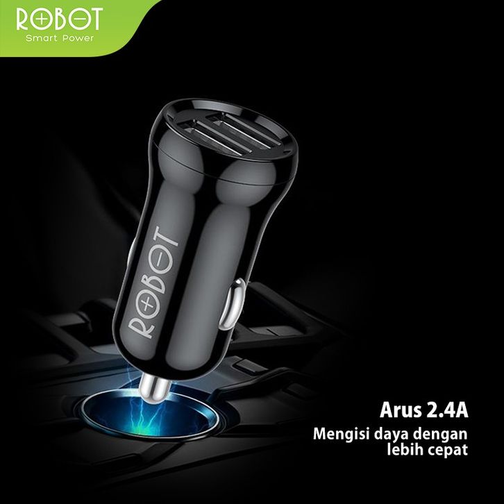 Car Charger Mobil Dual USB 2.4A Fast Charging dengan Smart Chip & Fireproof Shell FREE Kabel Micro USB RT-C07 Original