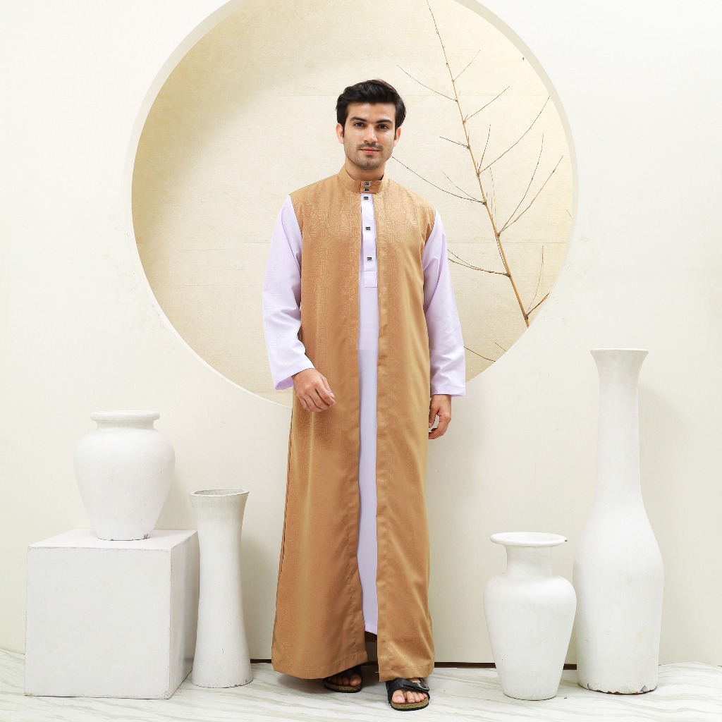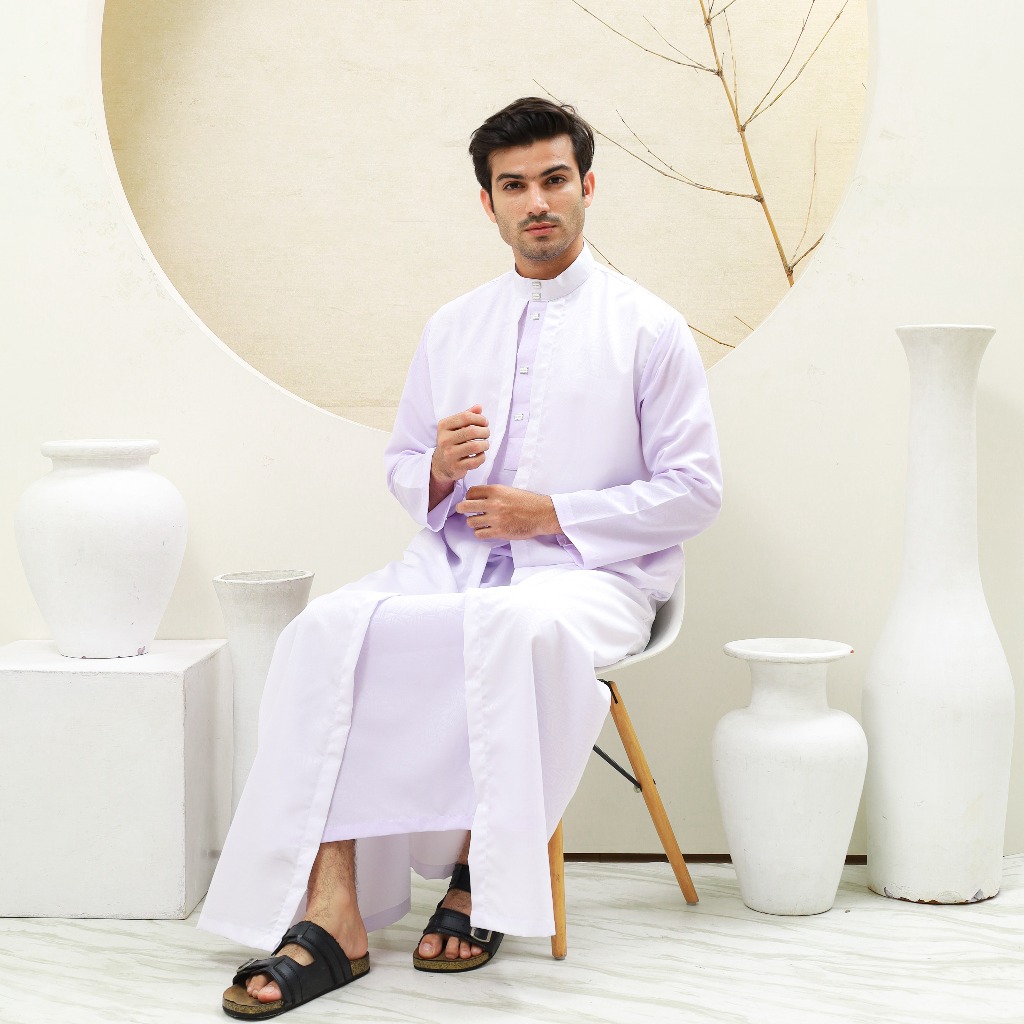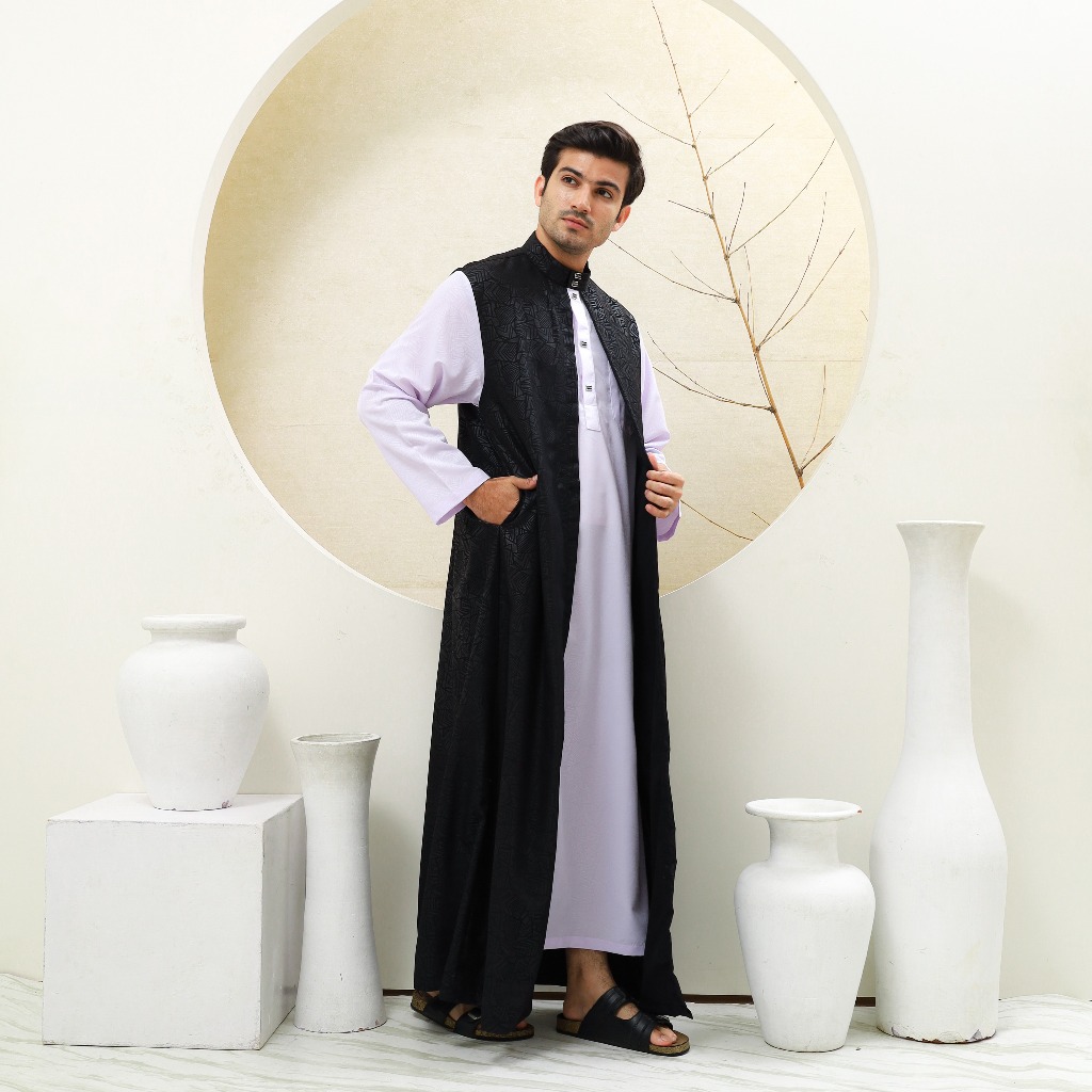 GAMIS PRIA LUARAN EMBOS JUBAH SAUDI REMAJA TERBARU LENGAN PANJANG HITAM KANCING MOTIF STYLE MUSLIM