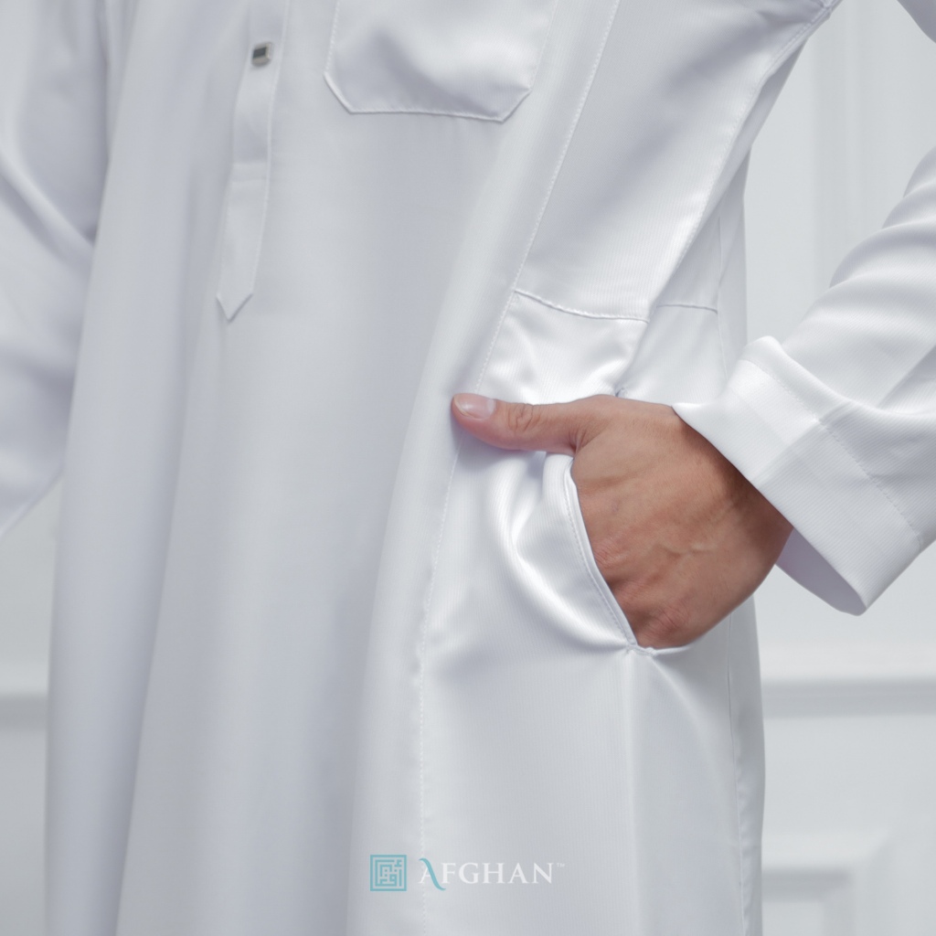 AFGHAN Thobe Ahsan Model Jubah Saudi Pria Dengan Kancing Snap Premium Type Lengan Panjang Polos Non-manset, Kerah Berdir