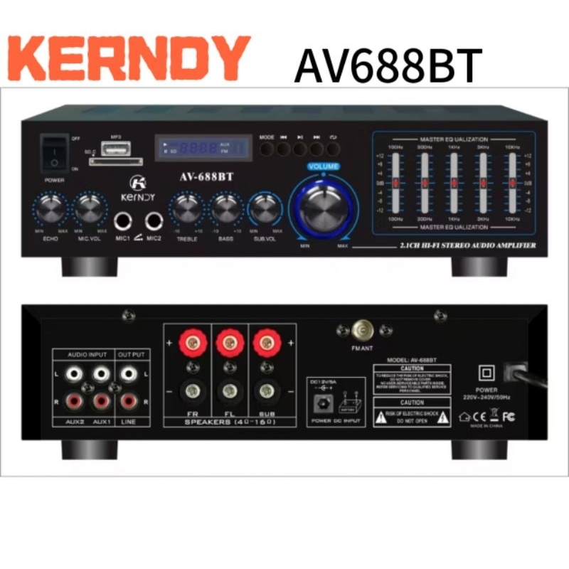 Amplifier Kerndy Bluetooth 5.3 Audio EQ AV-688BT Channel 2.1 Full Bass SUBWOFER Amplifier Karaoke Home Theater AV688BT