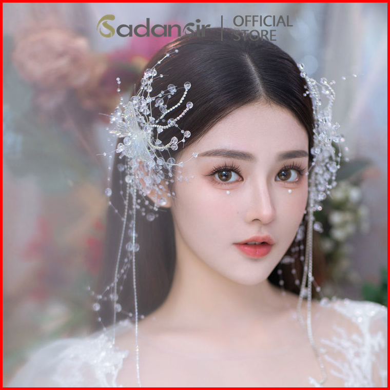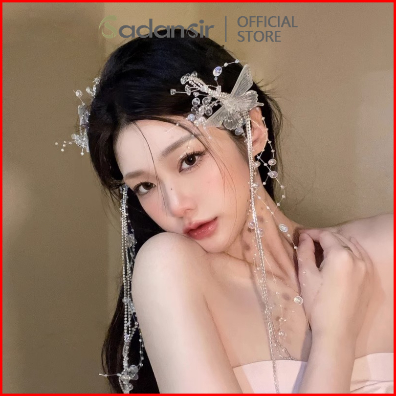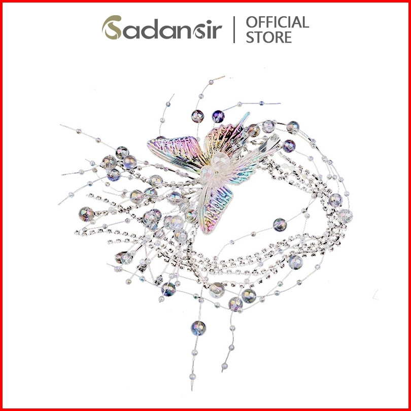 Sadansir Headpiece Permata Kristal Model Kupu-kupu Jepit Rambut Wanita Pita Mutiara Klip Rambut