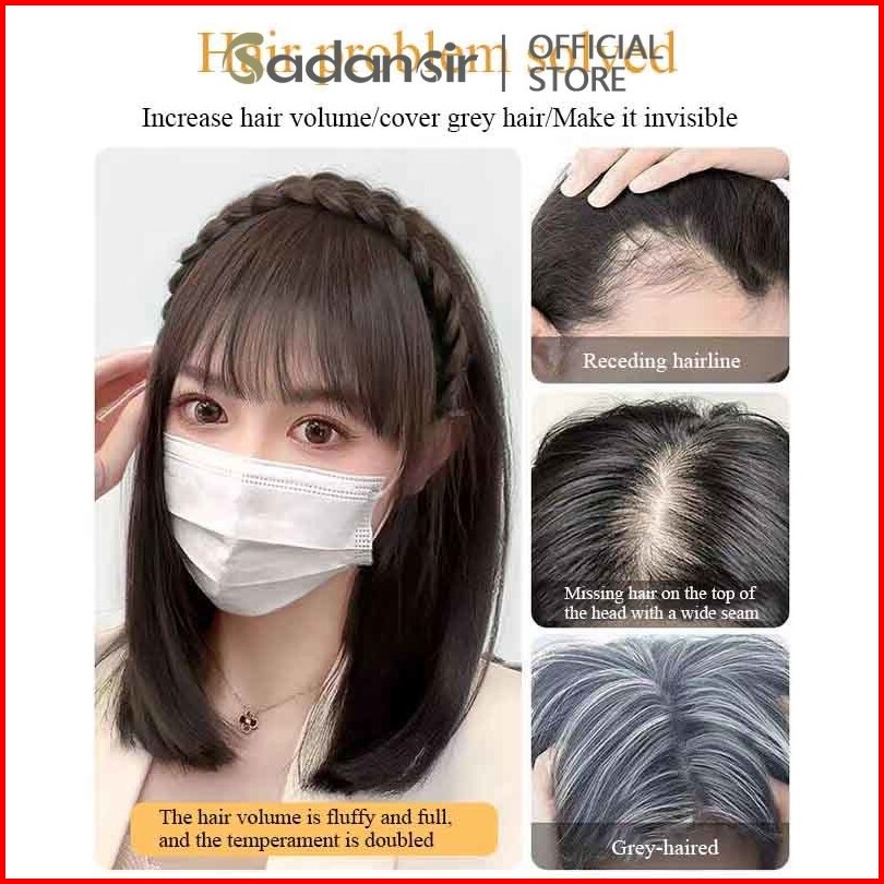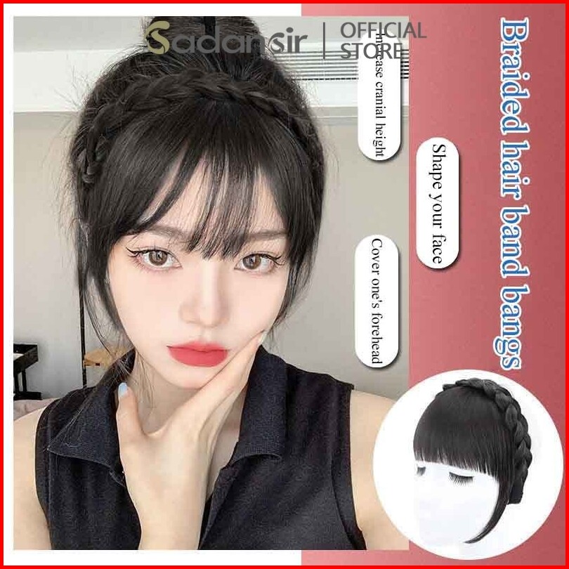 Sadansir Rambut Palsu Wanita Bando Rambut Kepang Poni Lurus Korea Wig Head Buckle Hair Extension