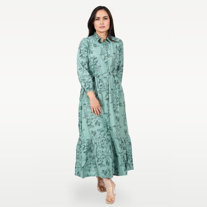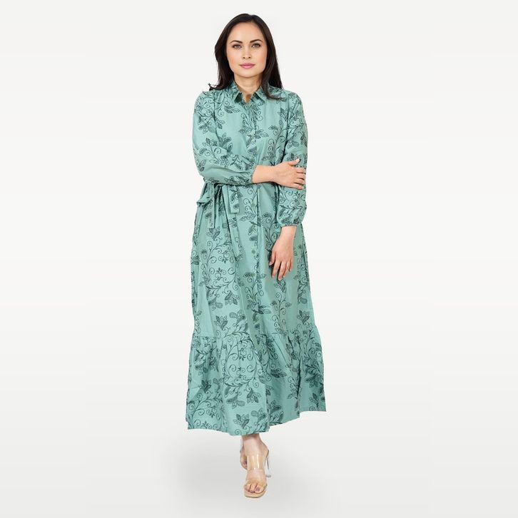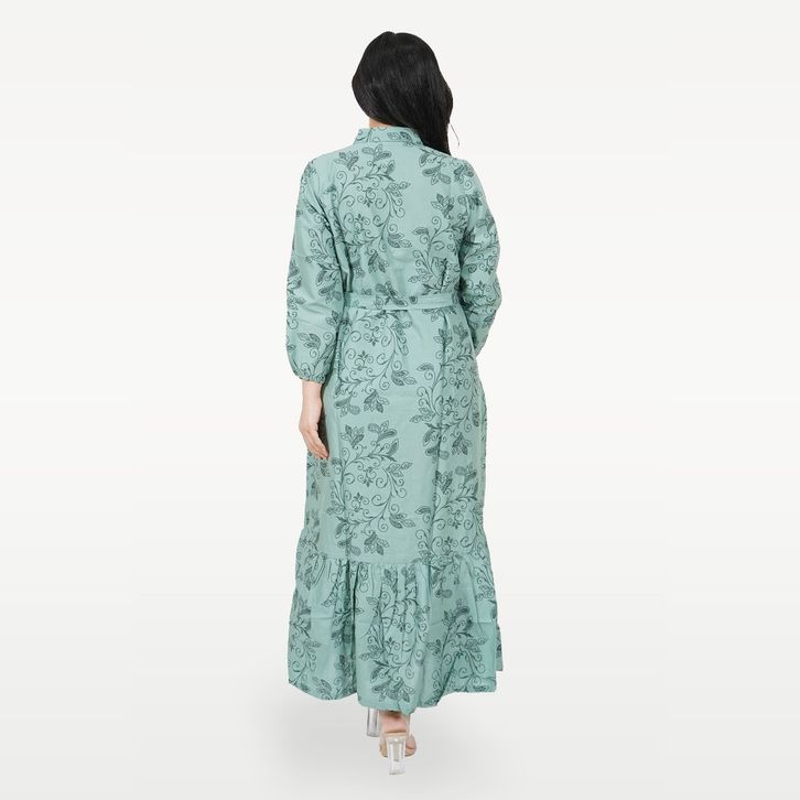 TERMURAH Puricia Alea Dress Muslim Gamis Wanita Terbaru Motif Bunga PGF25958HJU Jungle Green edobf