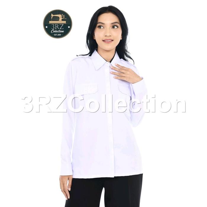 [PROMO] KEMEJA PUTIH KERAH HITAM WANITA PANJANG BAJU DINAS PUTIH WANITA SERAGAM PERAWAT PUTIH WANITA TWIST KRHITAM PJG WNT S
