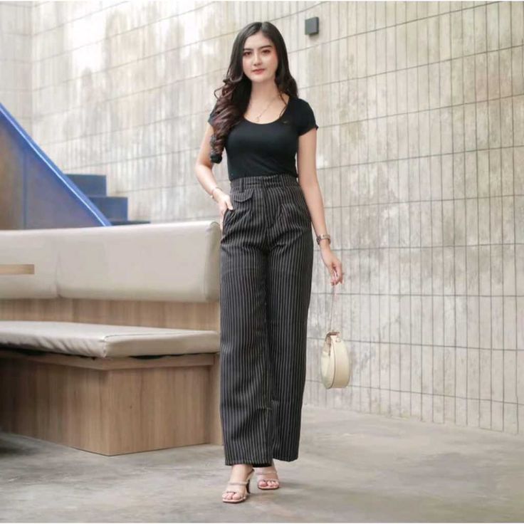 Oro Pants Stripe Bangkok Kekinian - Celana Wanita Murah Anti Kusut - Celana Panjang Wanita Highwaist Korean Style