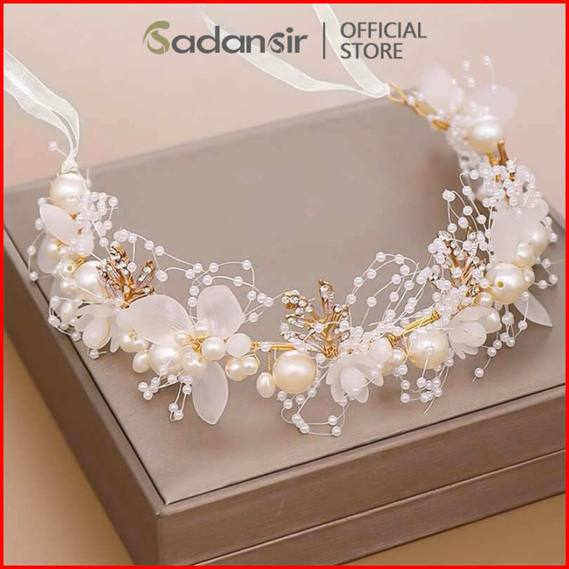 Sadansir Headpiece Mutiara Bunga Crown Bridal Tiara Mahkota Peri Super Daun Karangan Bando Pengantin