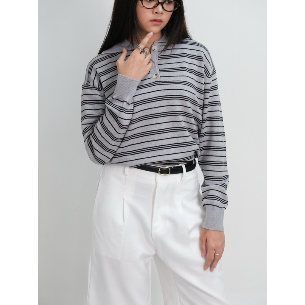 PUFF IT UP - Linea Polo Knit / Atasan Knit Polo / Polo Knit Top / Polo Shirt