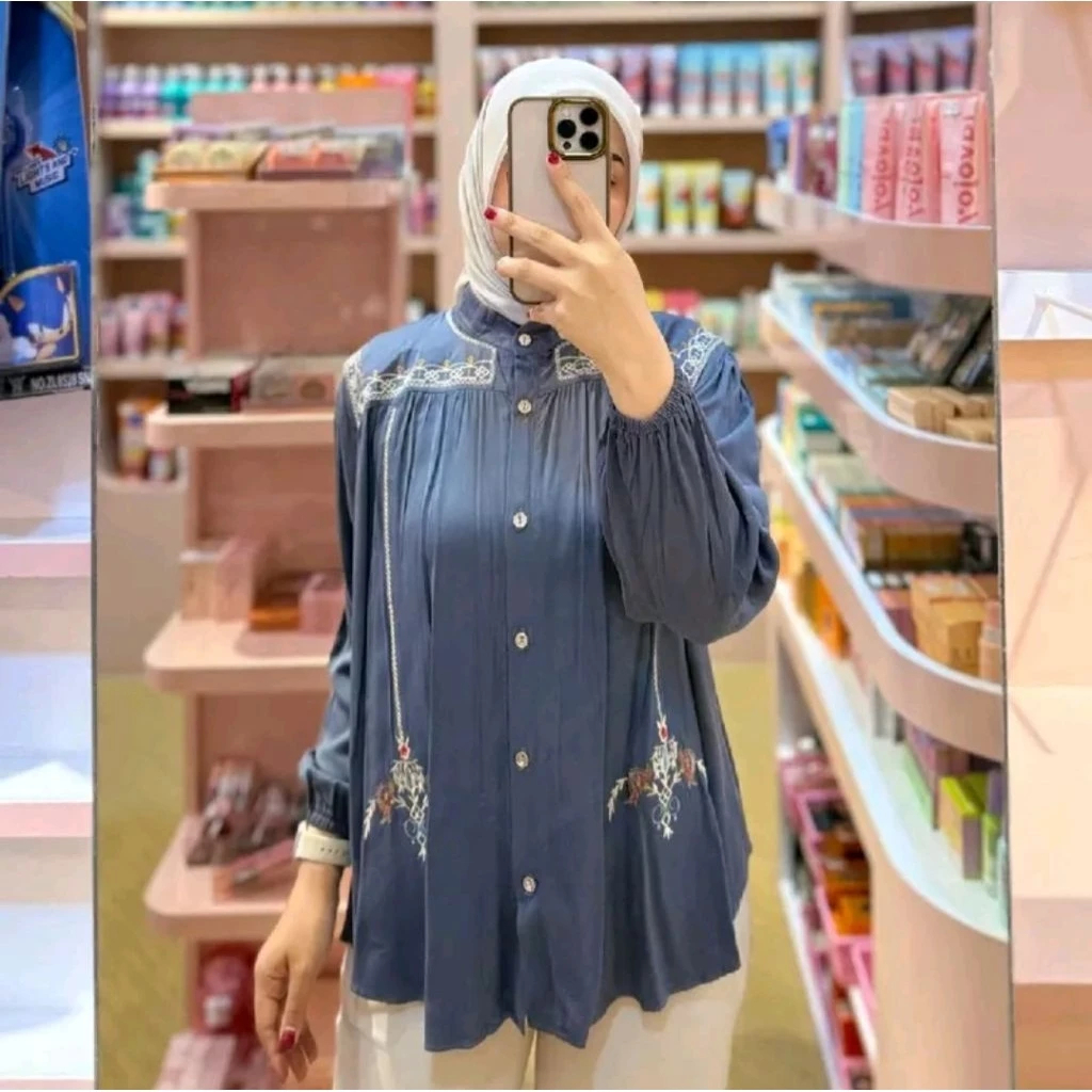 Atasan Wanita Kekinian Yasmin Bordir Rayon Twill Series Premium Blouse Wanita korean Style Lengan Panjang Best Seller