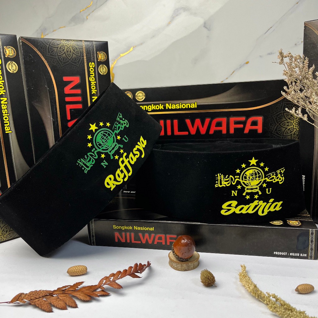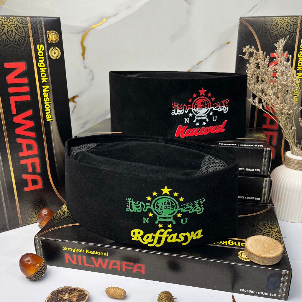 Peci Hitam NU NAMA Peci Songkok Kopiah Motif Logo NU Gratis NAMA Anak Laki Laki dan Dewasa Tinngi 9 cm