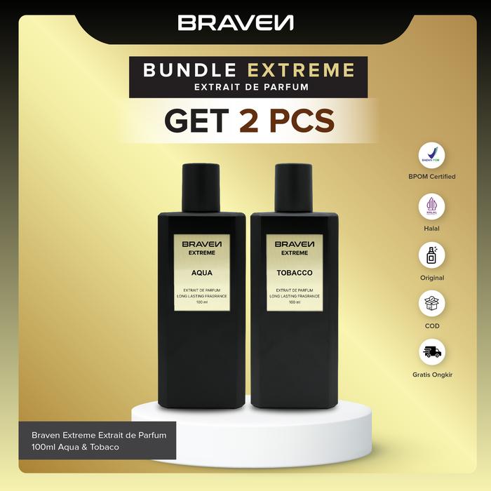 【GET 2 PCS 】BEST SELLER BUNDLE | BRAVEN EXTREME EXTRAIT DE PARFUM| PARFUM PRIA 100ML - PARFUM TAHAN LAMA - AQUA & TOBACO