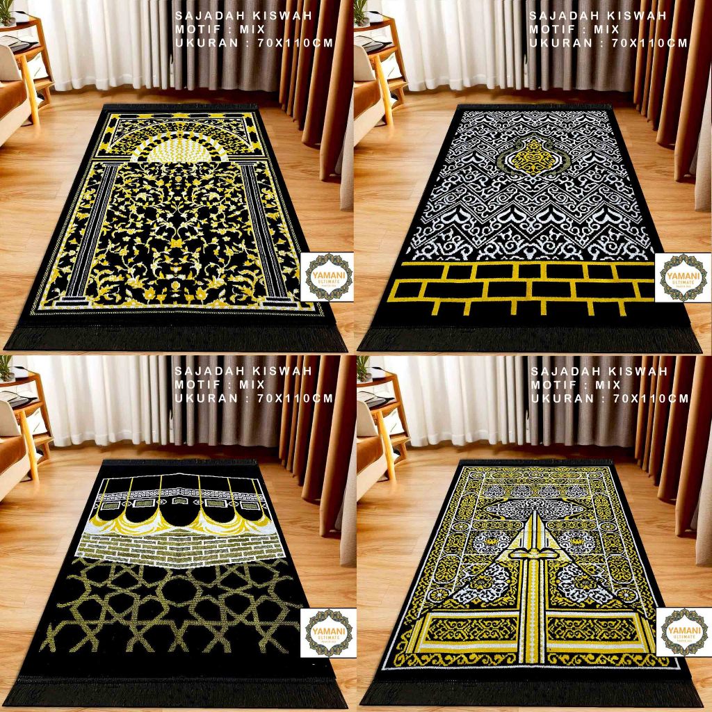 Promo 3 Pcs Sajadah Turkey Hitam- Sajadah Kiswah Raudah Uk 70x110 cm by Almeera moslem