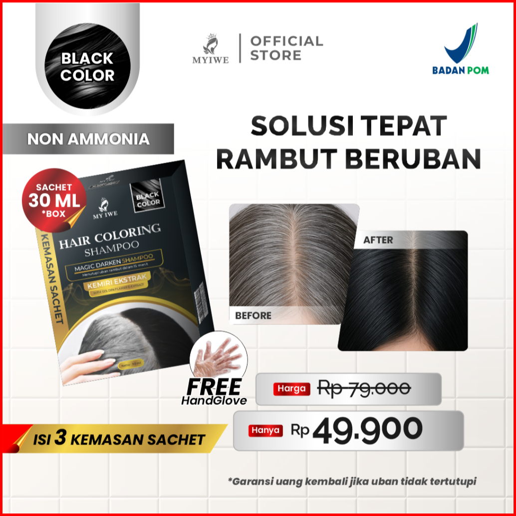 Myiwe Shampoo Penghilang Uban Penghitam Rambut Uban Original 1 Box Isi 3 Sachet