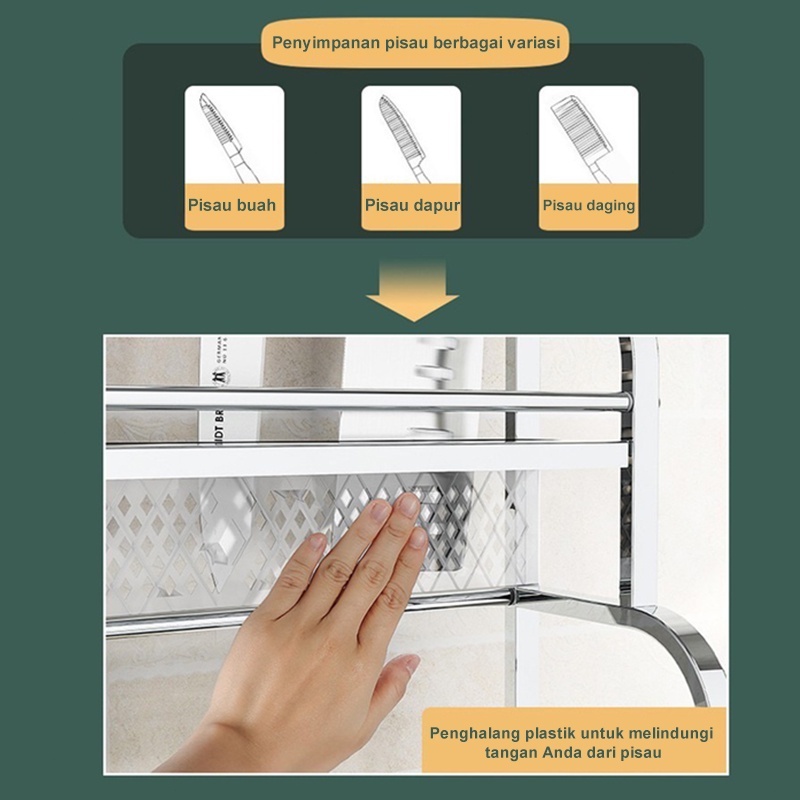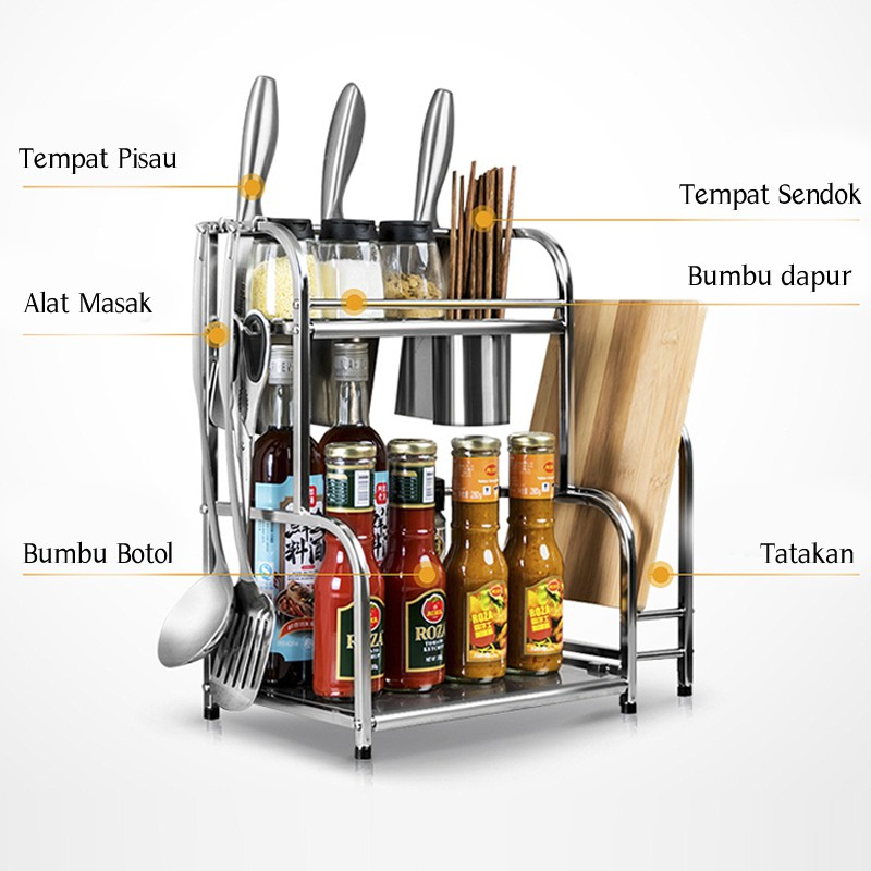 RAK DAPUR MEJA MAKAN MINIMALIS TEMPAT BUMBU STAINLESS STEEL 3 SUSUN SERBAGUNA
