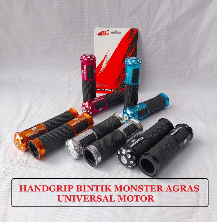 HANDGRIP HANDFAT ALMINI HAND GRIP BINTIK MOTIF MONSTER AGRAS HONDA YAMAHA SUZUKI KAWASAKI SARUNG GAS UNIVERSAL MOTOR 60L
