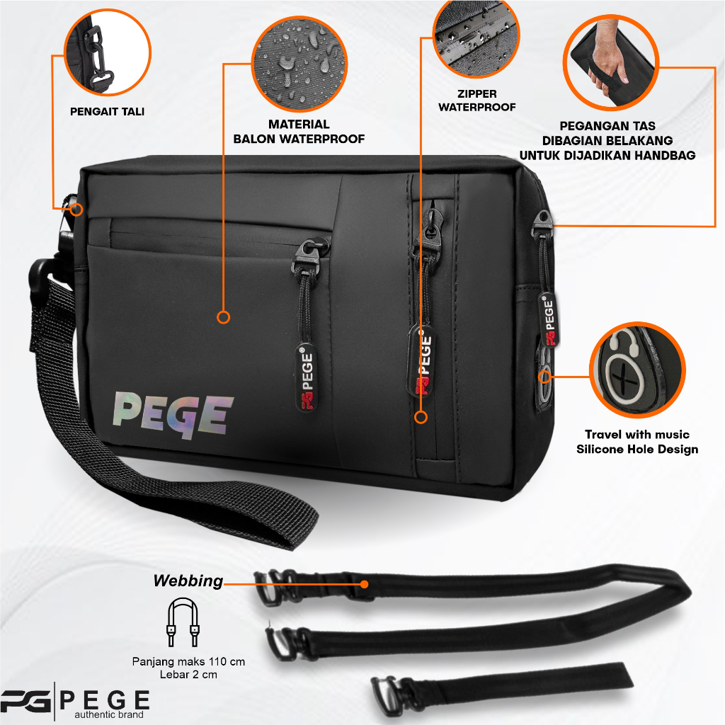 Tas Sling Bag 3in1 PEGE Dayton Selempang Waterproof Multifungsi Untuk Selempang Pouch dan Handbag - PG 9042