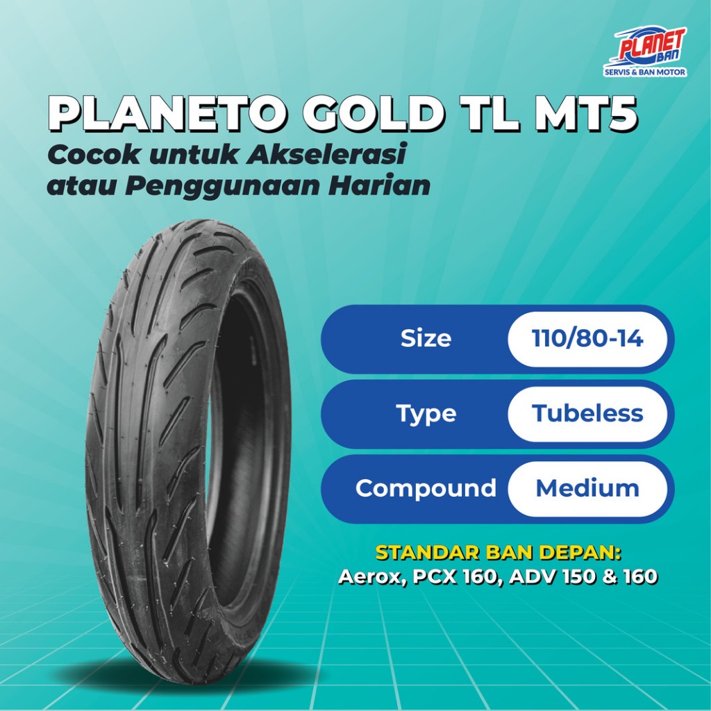 [Star] Ban Motor Ring 14 - 110/80 Planeto Gold MT5 (Ban Motor DEPAN Aerox, PCX 160, ADV 150 , ADV 160)
