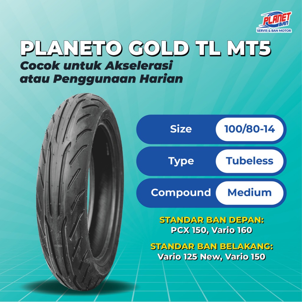 [Star] Ban Motor Ring 14 - 100/80 Planeto Gold MT5 (Ban Motor PCX 150, Vario 160, Vario 125 New, Vario 150)