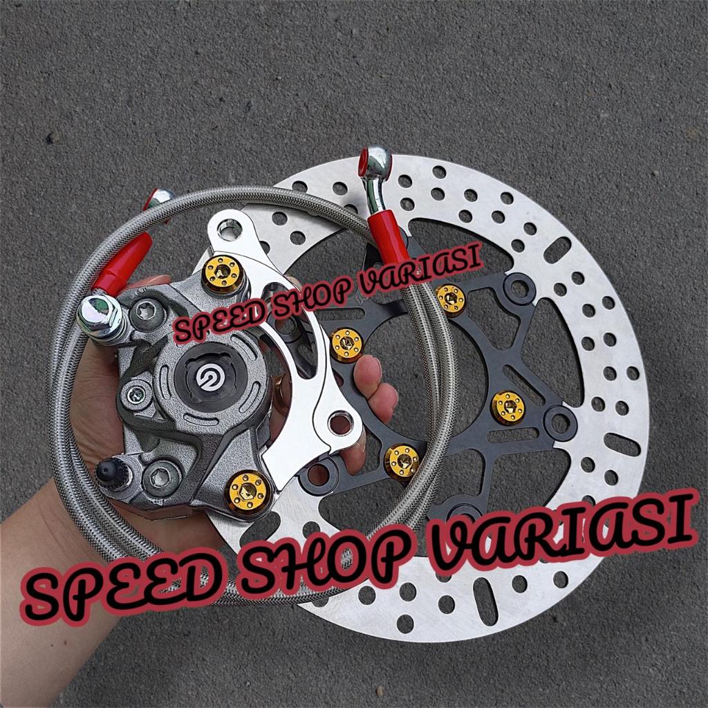 [Star] PAKET PIRINGAN DISC 220MM + KALIPER 2PISTON + SELANG REM 90CM + BAUT DISC + BREKET 220MM BEAT VARIO SCOOPY GENIO