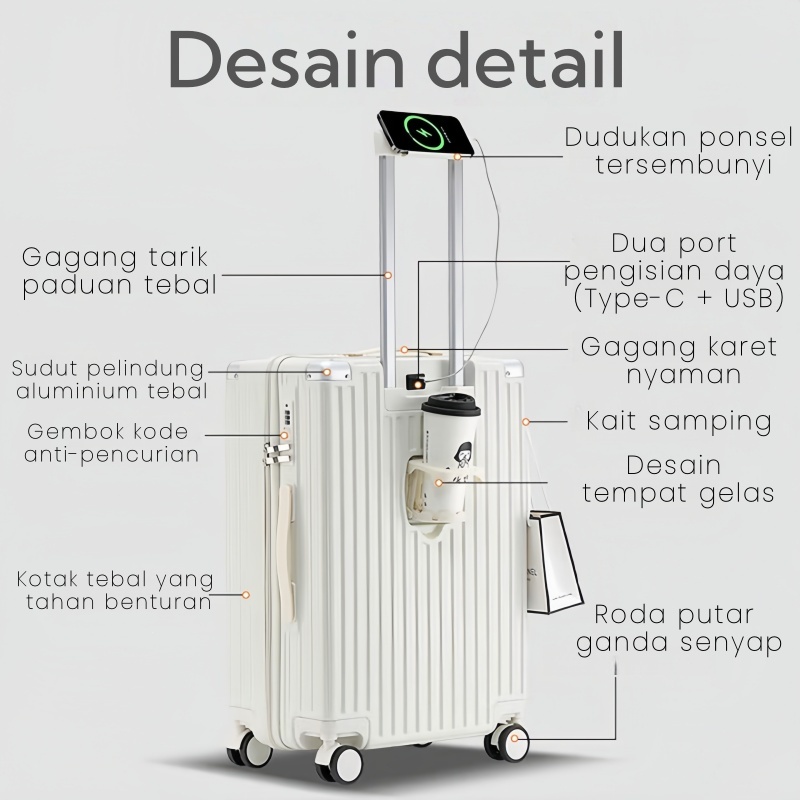 Feybaul Koper premium ABS+PC berukuran 18/20/22/24/26/28 inci Koper berzipper bergaya baru Koper trolley yang dapat diba