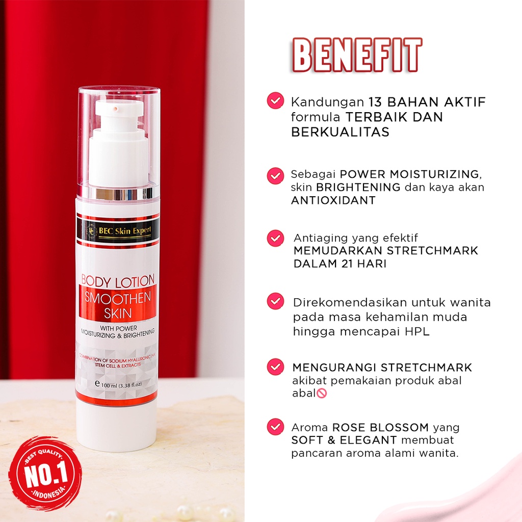 [Mall] BEC Skin Expert - Body Lotion Smoothen Skin with Power Moisturizing & Brightening ( memudarkan strechmark)