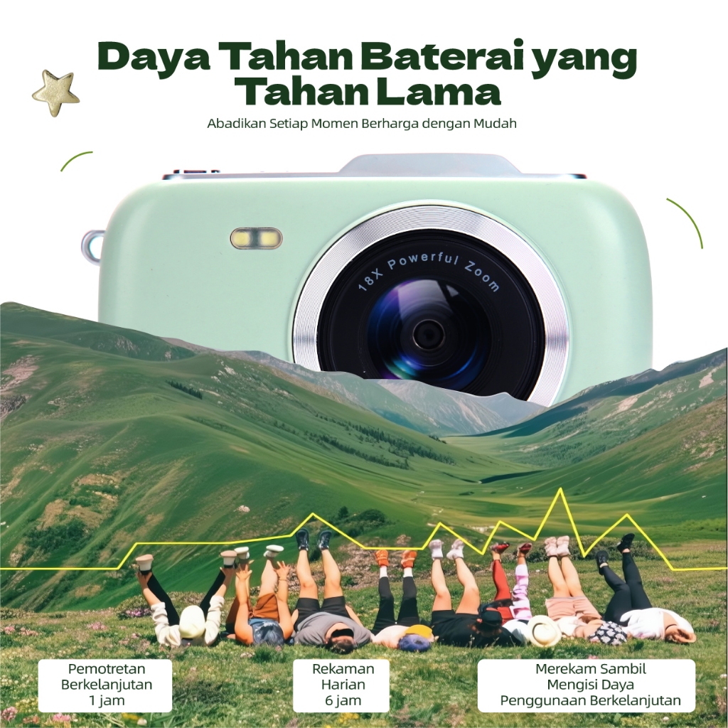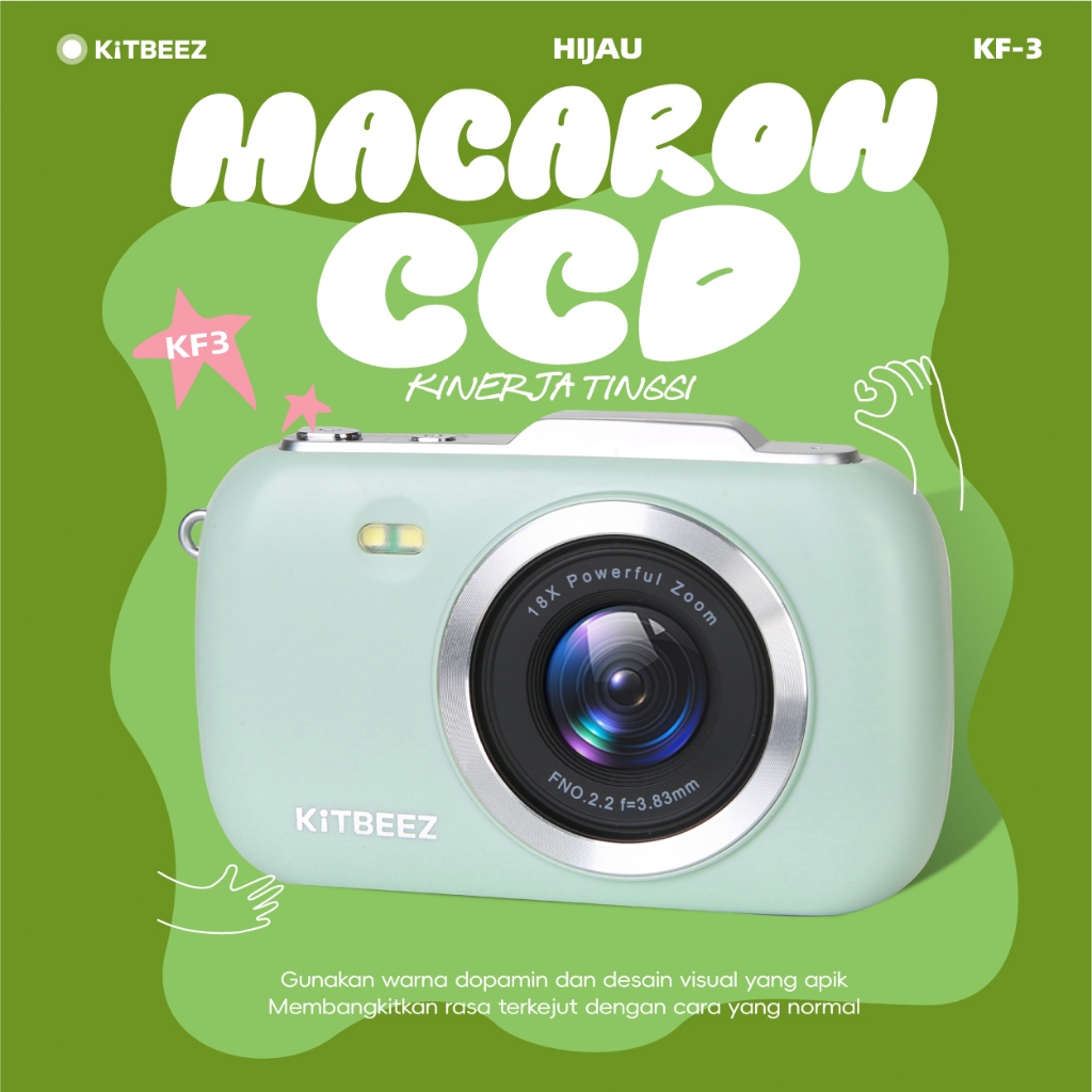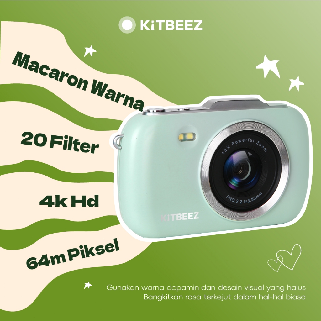 Kamera Digital 64MP 18X 4K HD Vedio Macaron Kamera Lucu Kamera Murah Dengan filter dan flash Kotak hadiah yang indah Cocok untuk hadiah