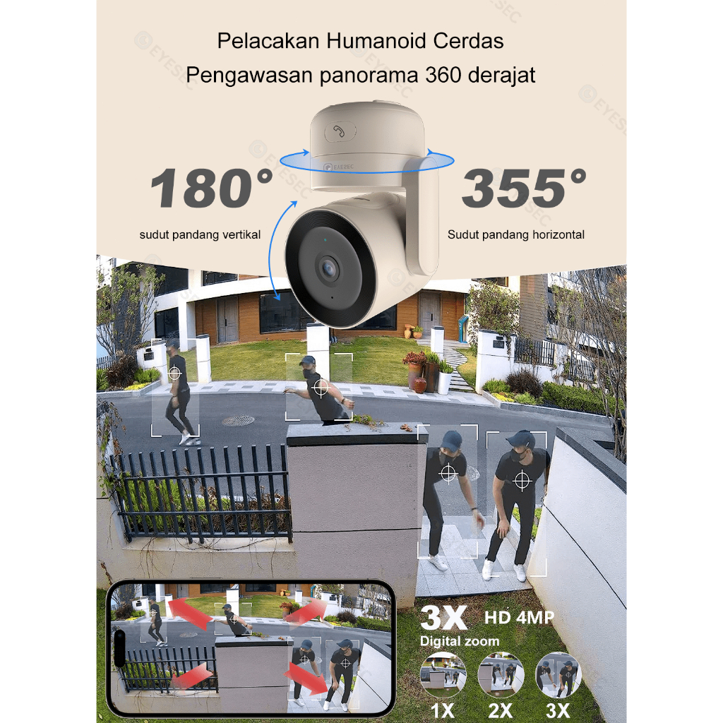 EYESEC CCTV ES08 2K Ultra HD Indoor WiFi 3MP Klik Satu Tombol Untuk Videocall Ke Hp Smart IP Camera