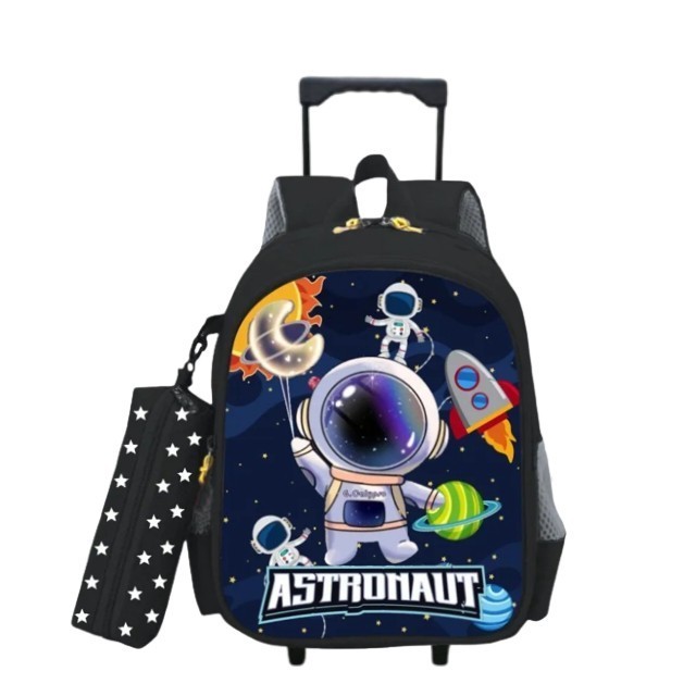 Tas troli anak COWOK TK 2in1 bisa Roda dan Ransel tas Roda Anak free pouch