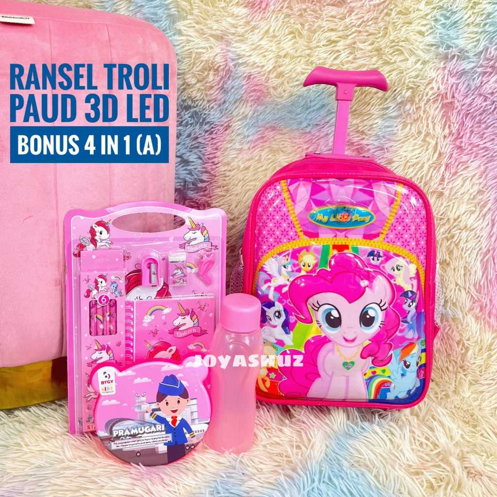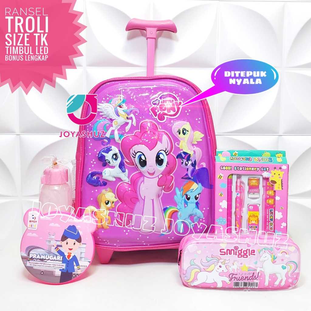 Tas Troli Anak Perempuan Karakter Pony - Tas Dorong Anak TK Paud - Tas Anak Perempuan 3D Glosy Unicorn - Tas Sekolah Kar