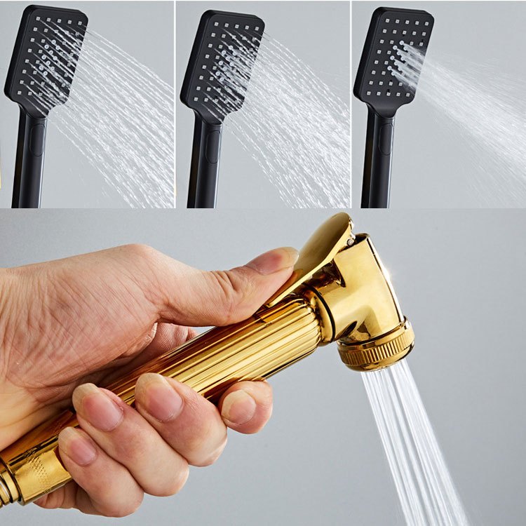 Shower Kamar Mandi Full Set Tembaga 4 Dalam 1 Shower Set Panas-Dingin Dengan Faucet /Emas Hitam Shower Mandi