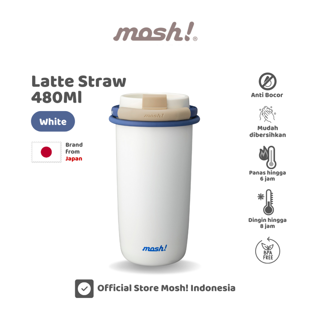 Mosh Latte Straw Tumbler Stainless Steel 480ML - Botol Minum Termos Tahan Panas dan Dingin - White