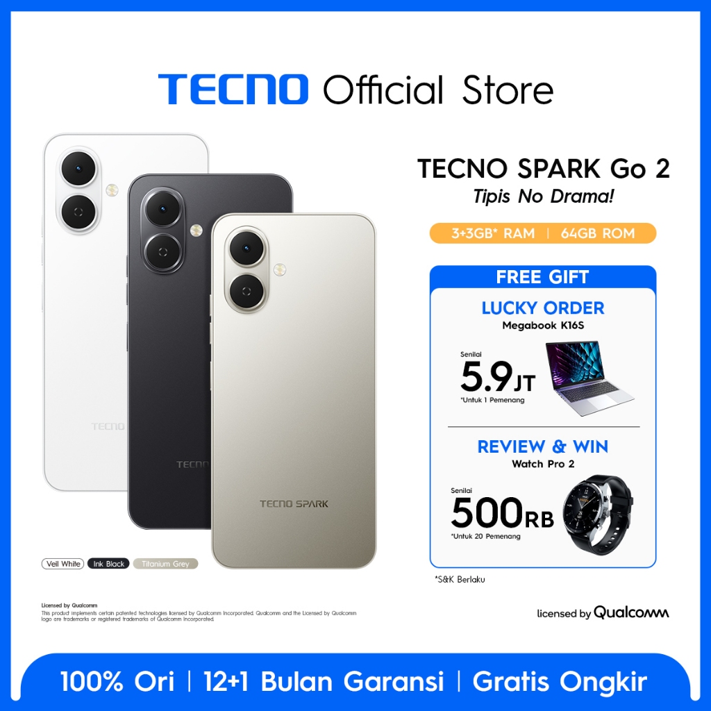 TECNO SPARK Go 2 3GB+3GB/64GB, IP64, 6.67" HD+, 120Hz Smooth Display, 5000mAh, 18W Charging, Freelink Communication, Android 15-go, sparkgo2