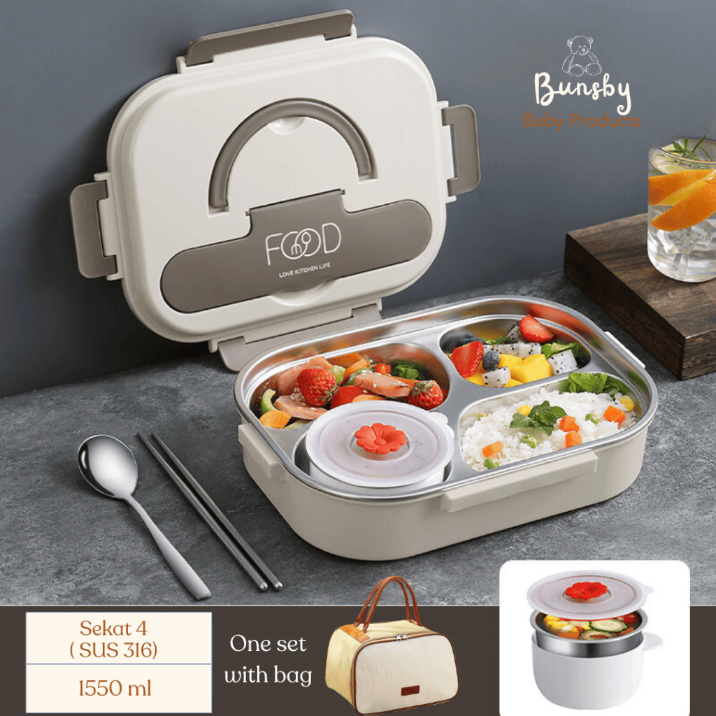 BUNSBY - Lunch Box Kids Baby/Kotak Bekal Makan Anak Bayi Stainless Steel 316 Dengan Tas Premium