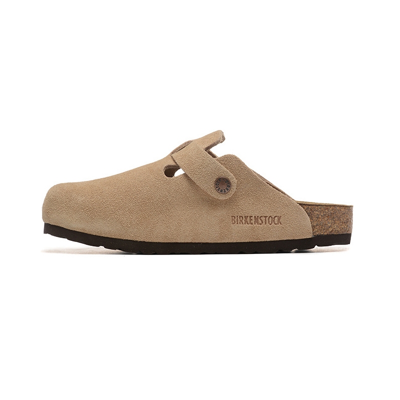 Birkenstock Boston Taupe Original Sandal Slop Suede Leather Soft Footbed Clogs Pria/Wanita Slippers