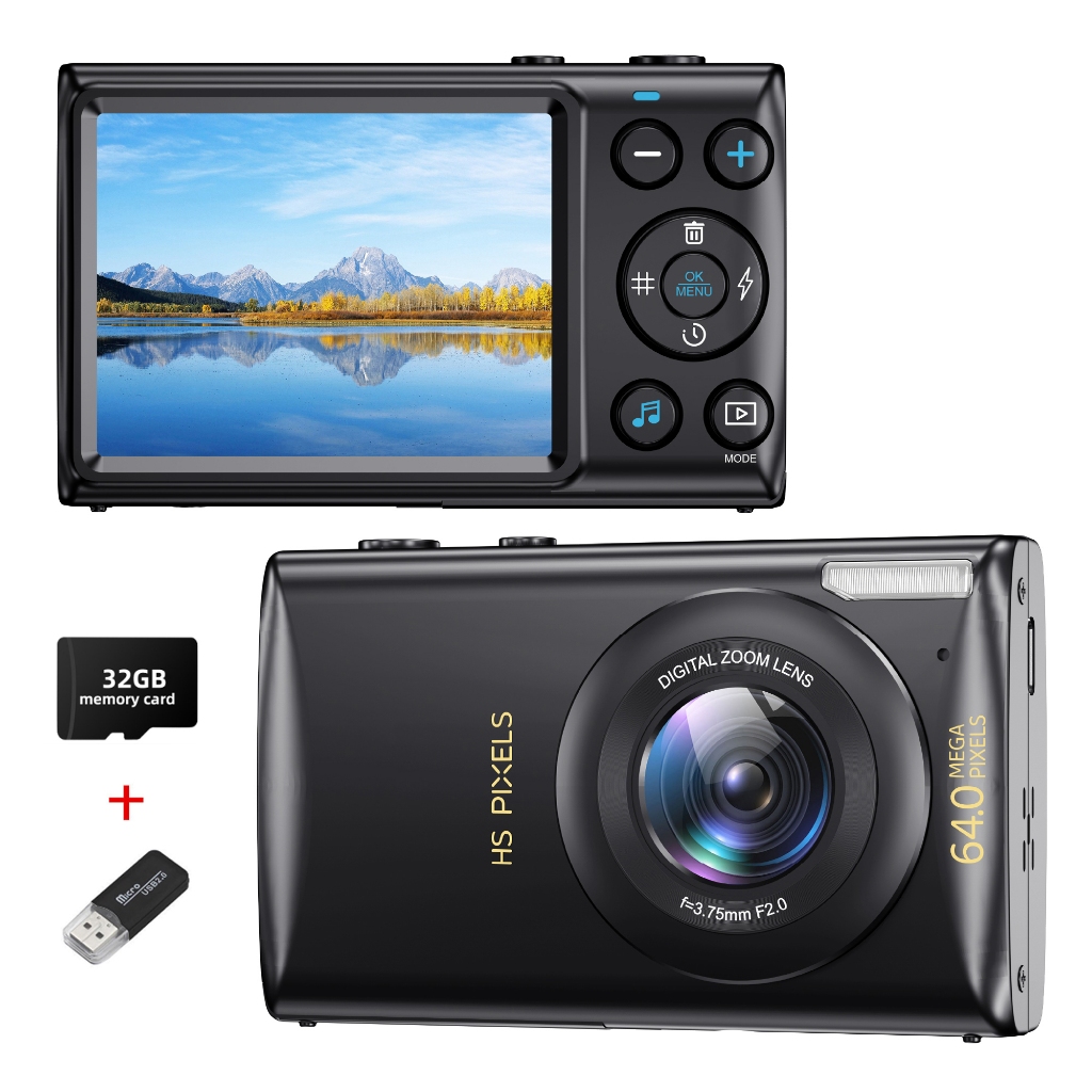 Free 32G Kamera Digital 64MP Dengan Zoom 18X Kamera 2.8" screen Dengan Anti Guncangan, Sempurna Untuk Vlogging, Pemula Remaja