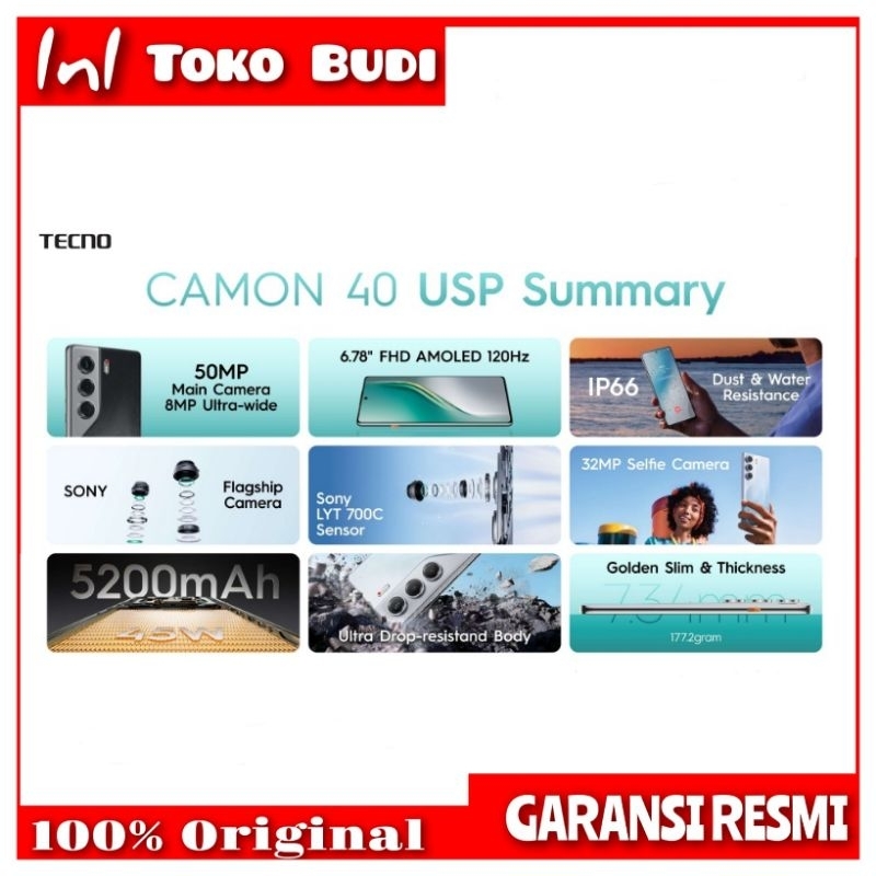 Tecno Camon 40 / Camon 40 Pro 8/128 /8/256 Garansi Resmi