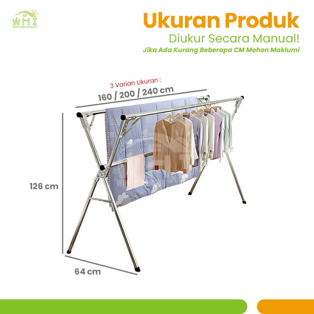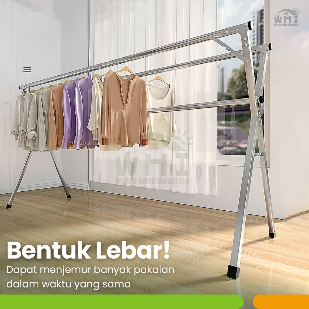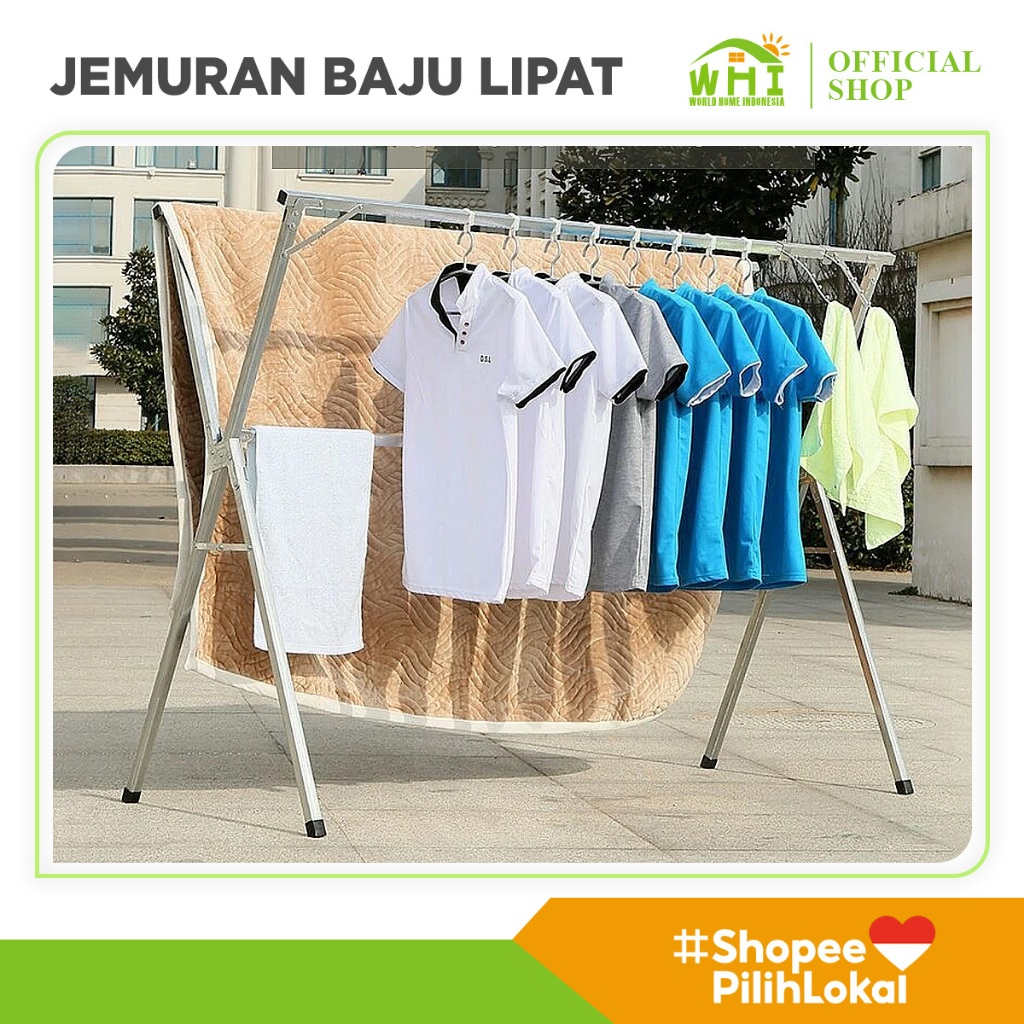 World Home Jemuran Baju Lipat Jemuran Pakaian Anti Karat Kuat Jemuran Baju Portable Jemuran Lipat